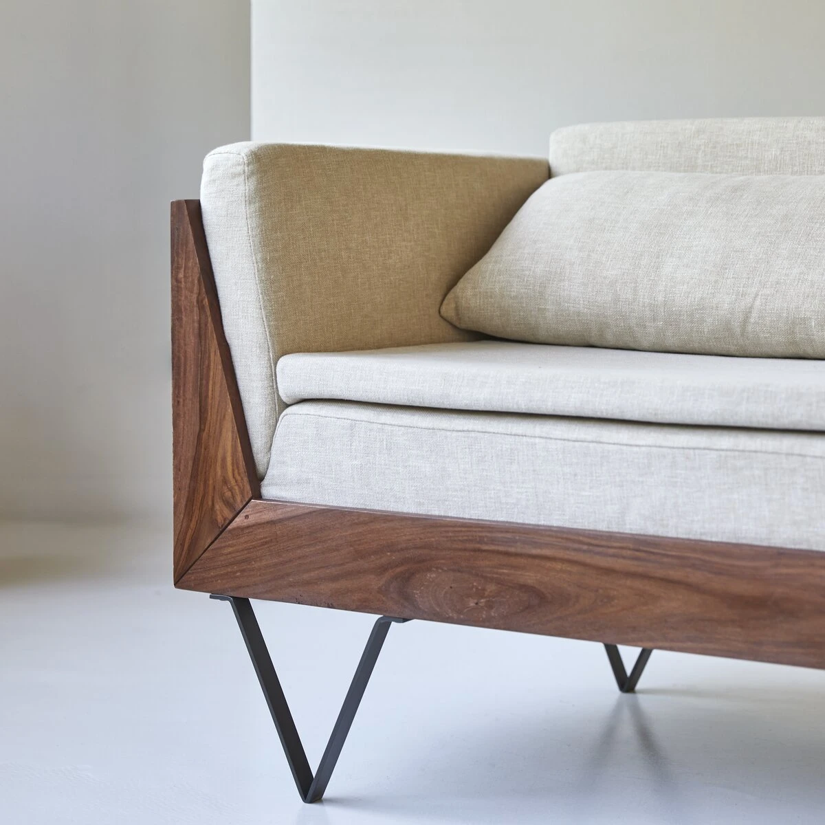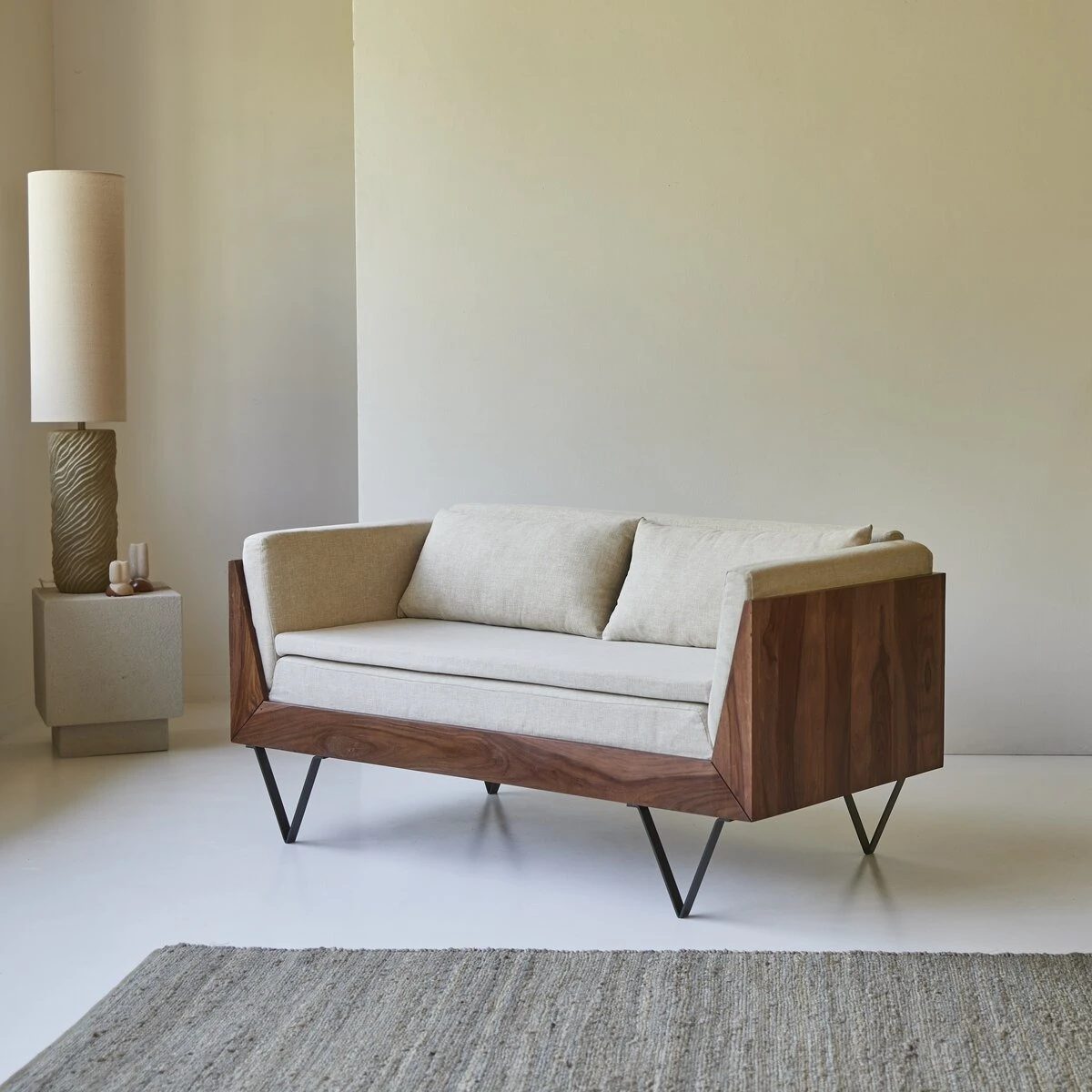 Le canapĂ© Metric en palissandre massif et tissu Ă©cru sĂ©duit par la beautĂ© du bois aux tonalitĂ©s chamarrĂ©es et veinures apparentes… et par son Ă©lĂ©gante sobriĂ©tĂ©. On aime sa ligne minimaliste, son design strict adouci par les assises bien confortables en tissu et l’originalitĂ© des pieds « Ă©pingles » qui en accentuent l’esprit graphique. Singulier, le canapĂ© Metric modernise un salon Ă la dĂ©co plutĂ´t classique ou accentue l’esprit contemporain d’un intĂ©rieur en s’associant Ă une table de salon moderne comme la table Niels en palissandre massif. Â