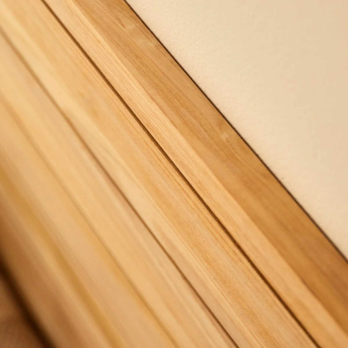 ParticuliĂšrement convoitĂ© en architecture et en mobilier, le teck est dense, rĂ©sistant Ă l’humiditĂ© et durable. TrĂšs esthĂ©tique, il affiche une Ă©lĂ©gance teintĂ©e dâexotisme et offre une large palette de nuances : miel clair, bronze ou brun avec des veinages sombres.