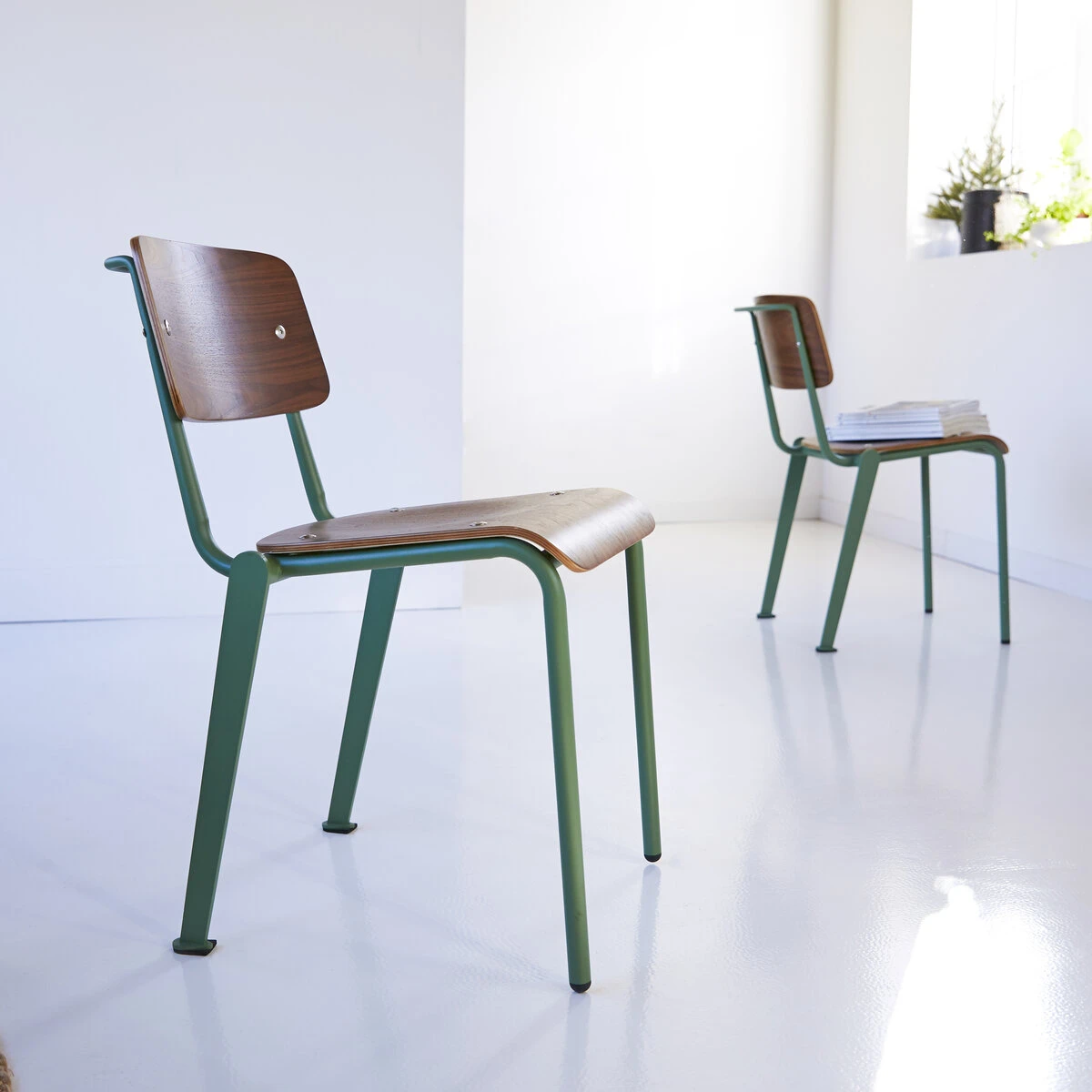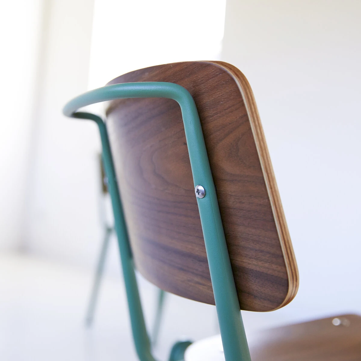RĂ©alisĂ©e en noyer et mĂ©tal peint, vous aimerez son esprit revival : elle ressemble Ă s’y mĂ©prendre Ă nos sièges de collège et lycĂ©e ! Une bonne assise et une belle stabilitĂ© pour l’utiliser en chaise de sĂ©jour, de cuisine ou de bureau.Â