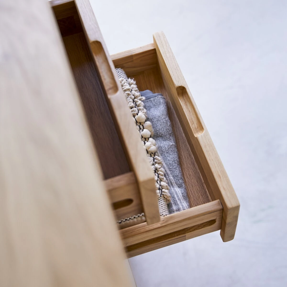 Beaucoup de personnalitĂ© pour le bahut en chĂȘne Paulo Oak ! Il conjugue la blondeur dâun bois brut massif, une trĂšs gĂ©nĂ©reuse capacitĂ© de rangement et offre un design Ă la fois Ă©purĂ© et graphique⊠Un beau meuble quâon a plaisir Ă installer dans toutes les piĂšces de la maison : au sĂ©jour ou dans la cuisine, il reçoit linge de table et vaisselle, au salon tout ce qui a trait Ă lâapĂ©ritif par exemple⊠dans la chambre ou le bureau, il rend aussi de multiples services.Â