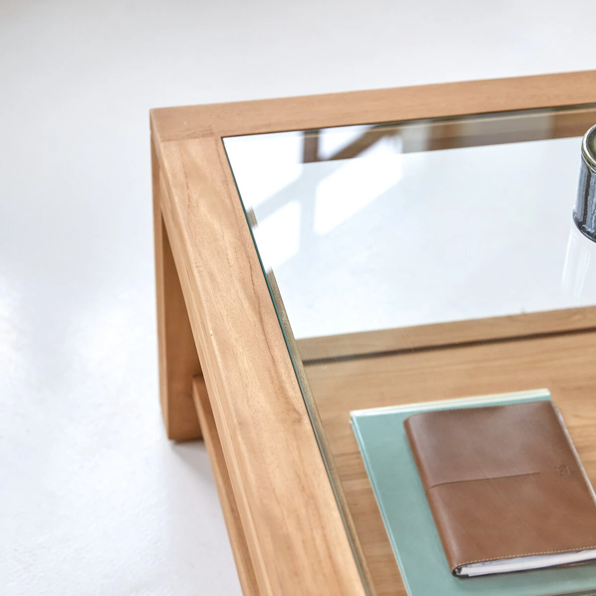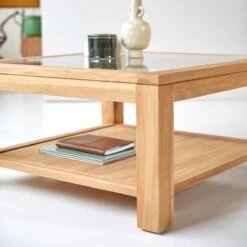 Notre table basse Perle est conçue en verre et en teck provenant d’Indonésie. Grâce à son plateau inférieur vous pourrez ranger tout votre nécessaire à portée de main. Son originalité réside dans cet élégant mariage du bois et du verre. Son élégance est caractérisée par des lignes sobres et sophistiquées, vous serez également séduits par sa teinte claire naturelle. Cette table basse sera idéale pour un intérieur à la fois contemporain et élégant.