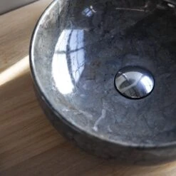 A noter : parce que le marbre est une pierre naturelle, chaque vasque Pia dark grey est unique et présente des nuances de couleurs et d’aspérité différentes.