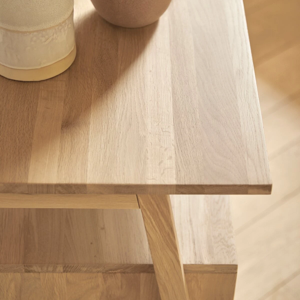 TravaillĂ© dans un chĂȘne clair massif, il offre une belle capacitĂ© de rangement et sâharmonise avec tout style de dĂ©co : sa sobriĂ©tĂ© de lignes permet toutes les associations !