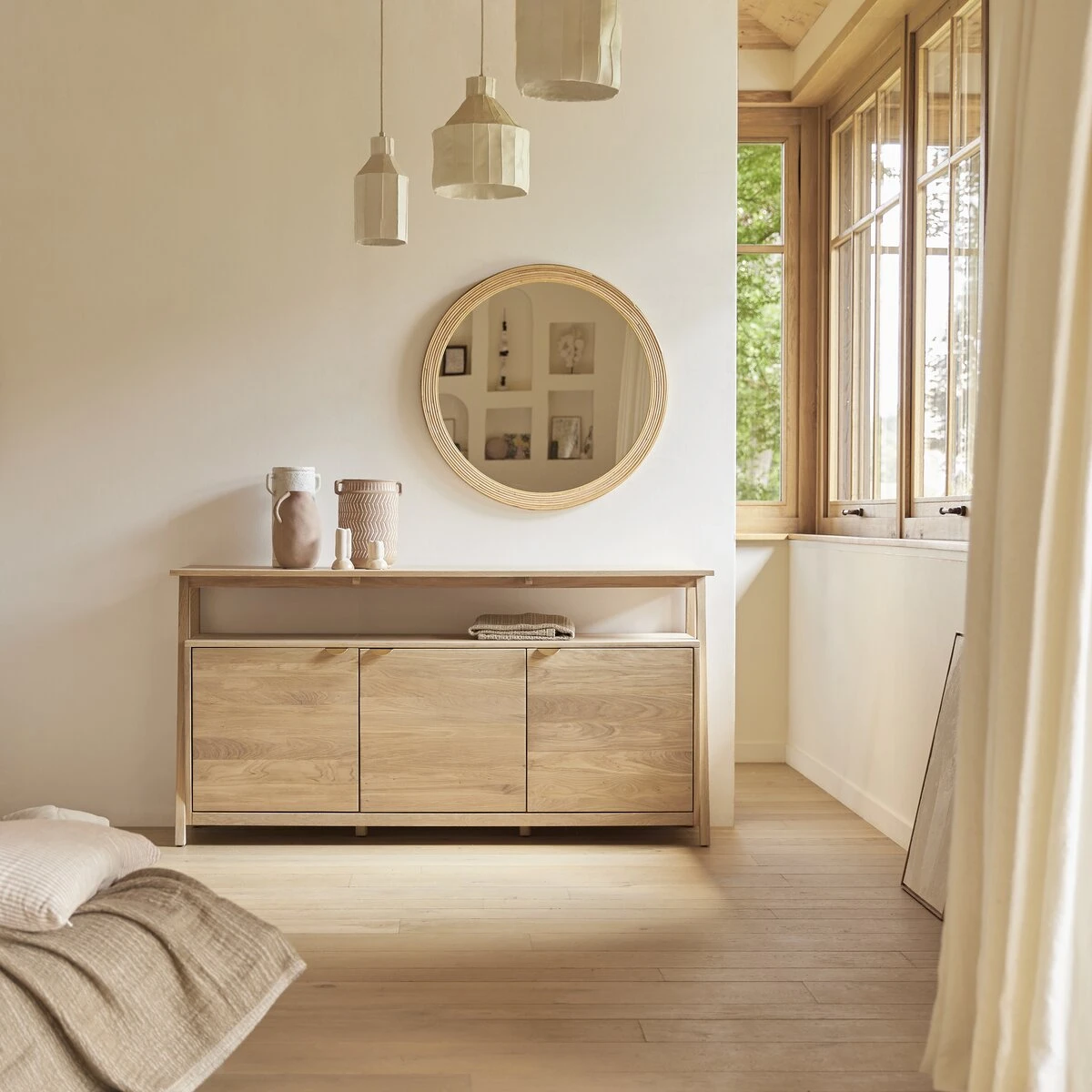 Le buffet en chĂȘne Pola existe aussi version meuble TV (ou meuble bas, au grĂ© des besoins ou des envies).