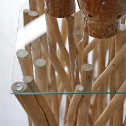 Chaleur et douceur s’invitent dans votre entrĂ©e ! Vous serez charmĂ©s par cette console au pied original constituĂ© de branchages de teck massif. SurmontĂ©e d’un plateau en verre, elle apportera lĂ©gèretĂ© Ă votre intĂ©rieur.