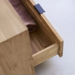 On aime sa forme “bloc” adoucie par un cadre tout en légèreté, la blondeur de son bois certifié FSC® et sa belle capacité de rangement. Bien pratique, il reçoit appareils et accessoires dans ses 2 niches et un large tiroir, idéal pour visualiser d’un seul regard tout ce qu’il contient.
