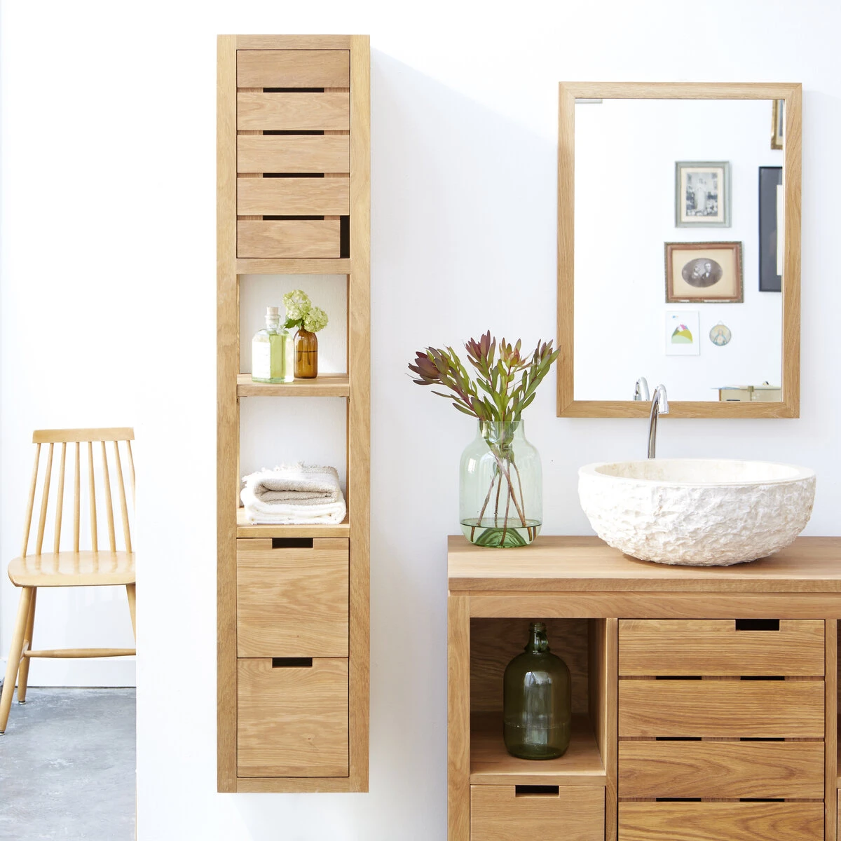 Charmante colonne de salle de bain en chĂȘne massif certifiĂ© FSCÂź.Â