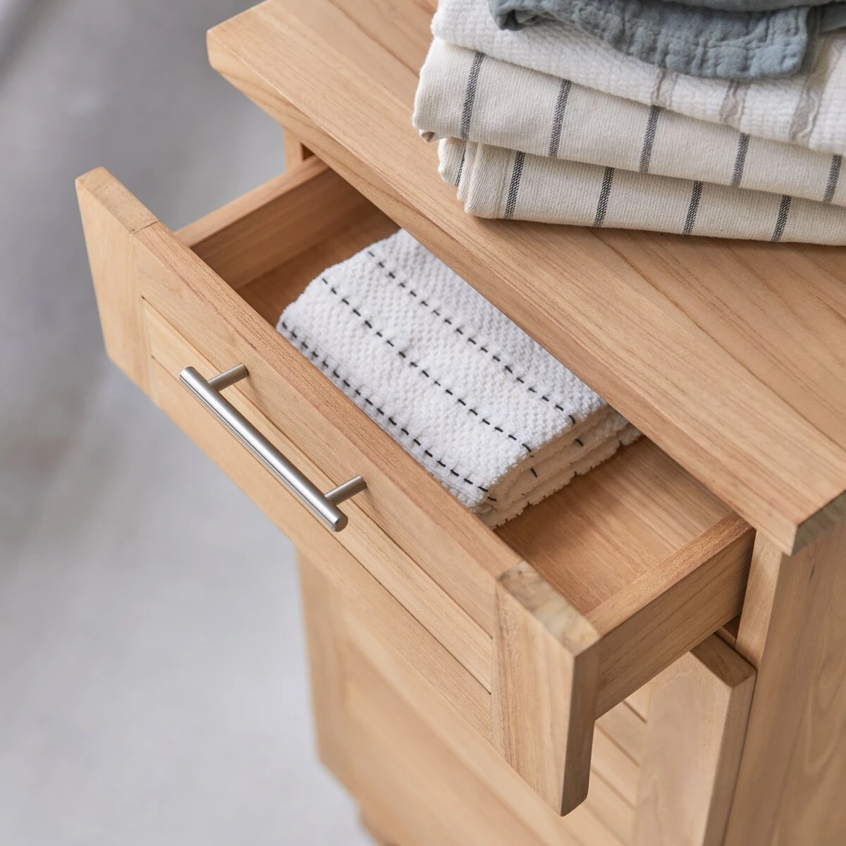 Très beau meuble de salle de bain en teck massif. Petite ou grande salle de bain, Tikamoon a imaginé pour vous une gamme très modulable !