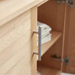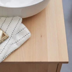 De fabrication europĂ©enne, le meuble sous vasque en hĂȘtre massif Soho est travaillĂ© dans un bois massif certifiĂ©nbsp; FSCÂź ce qui vous garantit quâil est issu de forĂȘts durablement gĂ©rĂ©es. Il bĂ©nĂ©ficie dâune finition huilĂ©e pour une protection en profondeur.