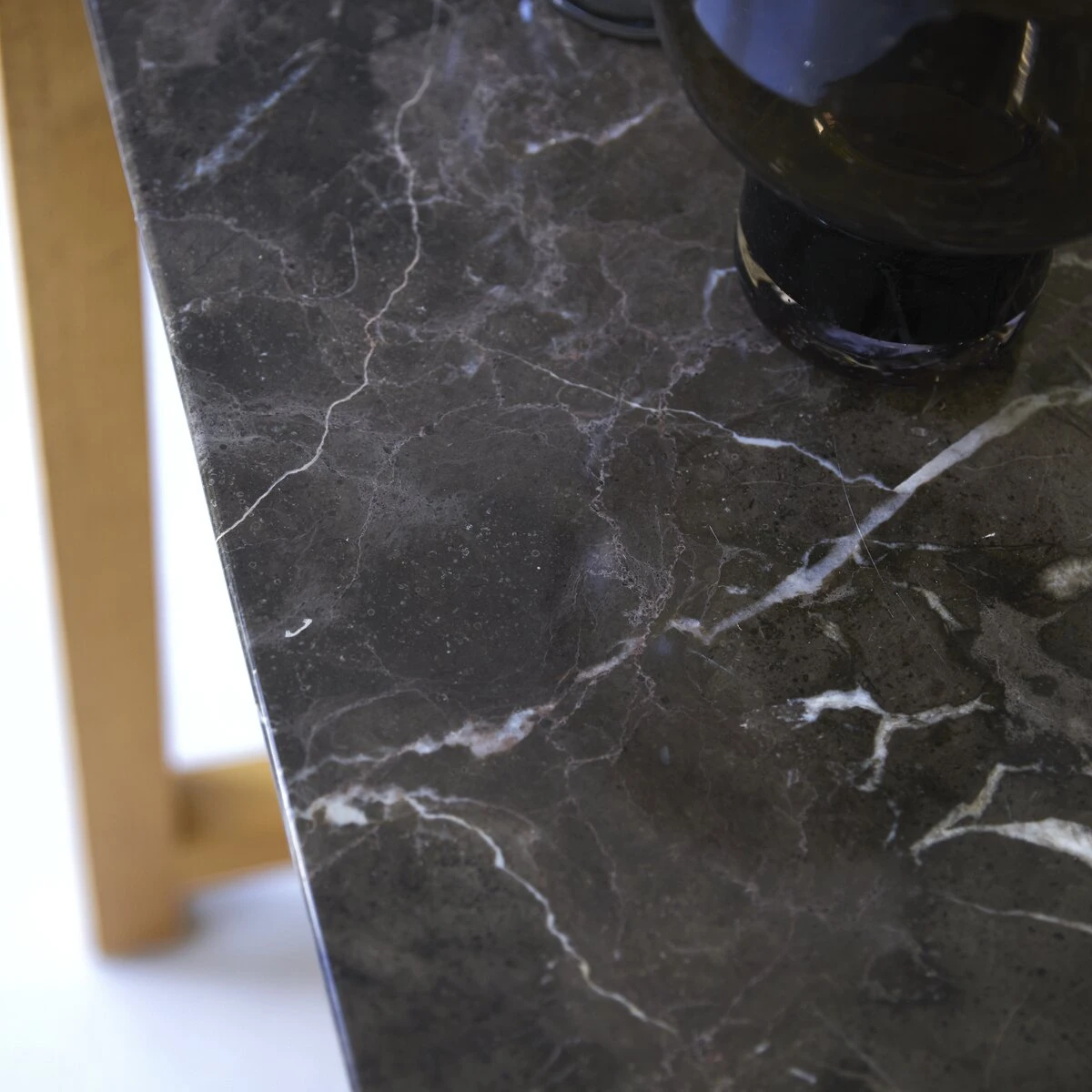 Contemporaine et pleine de personnalitĂ©, la console Stoneleaf en chĂȘne et marbre brown signĂ©e Bleu Nature habille avec talent une cloison du sĂ©jour, du salon ou de lâentrĂ©eâŠ