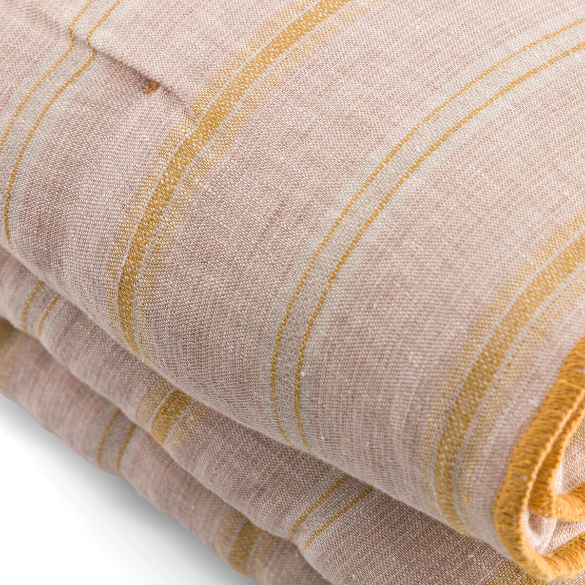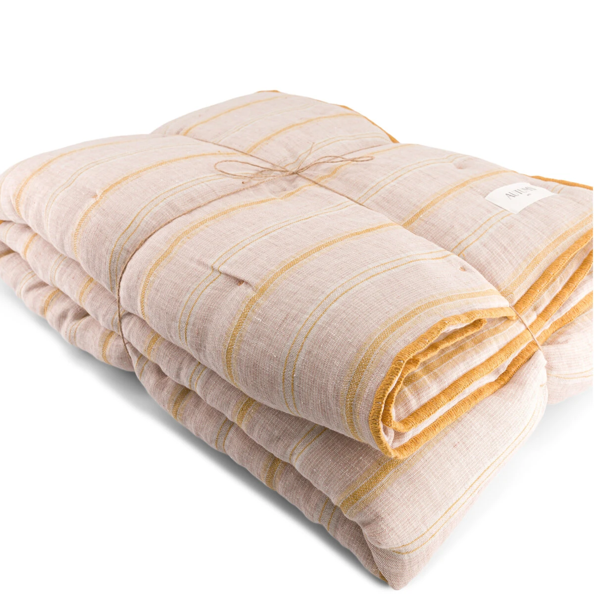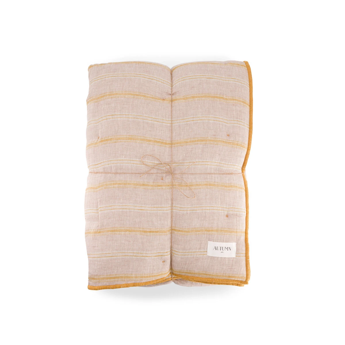 Elégance naturelle, esprit romantique… la couverture en lin Stripes sand signée Autumn Paris est un vrai trésor de douceur… Travaillée dans un lin organique issu de l’agriculture biologique, c’est à dire qui a été cultivé sans pesticides, insecticides et engrais chimiques, et dont les qualités de résistance, de douceur et de thermo-régulation ne sont plus à prouver, cette jolie couverture matelassée se fait, au gré des envies ou des besoins, plaid dans le salon ou le salon de jardin, jeté de fauteuil, dessus-de lit… On aime le jacquard tissé du plus bel effet et les finitions surjetées et volantées qui en soulignent encore la délicatesse.