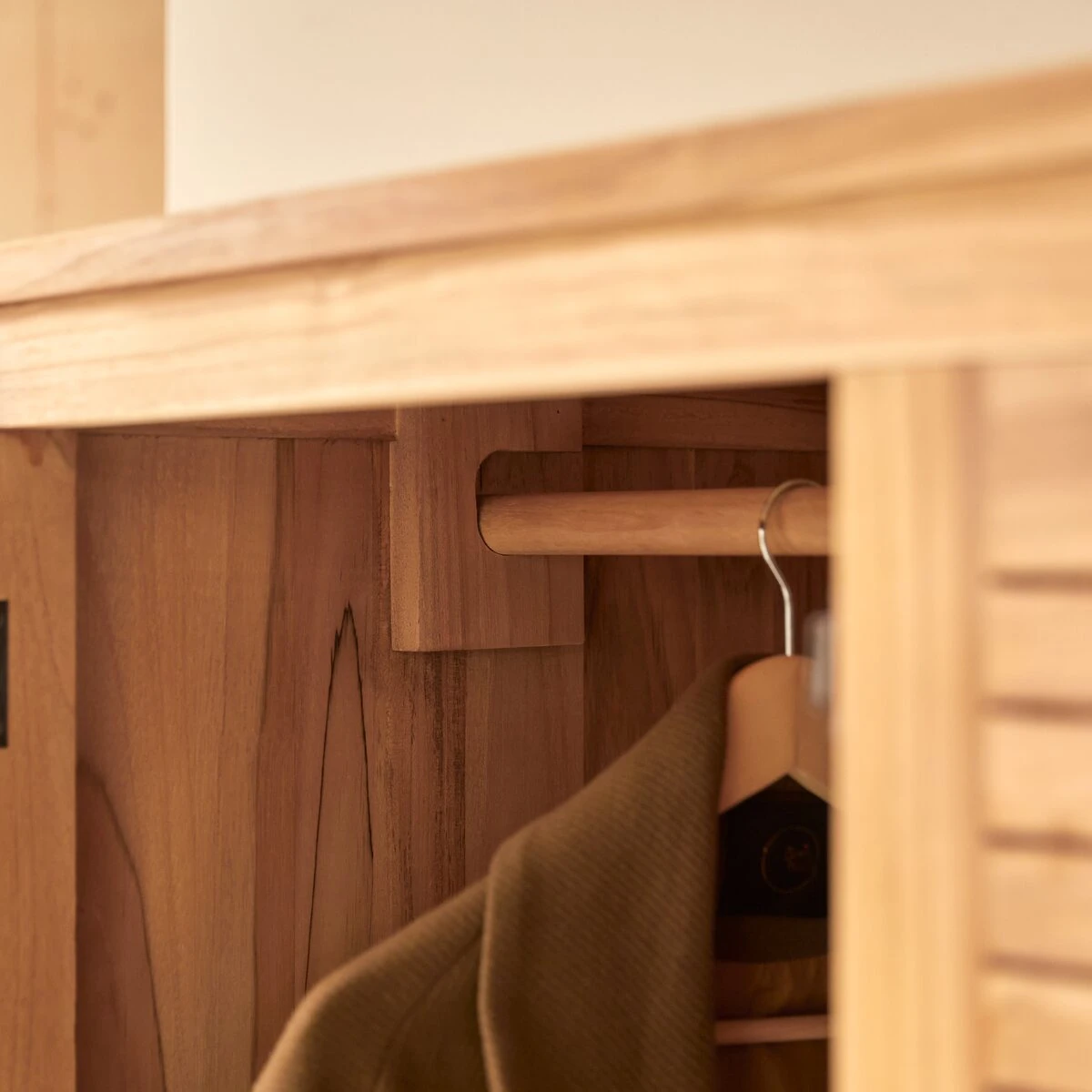 Raffinement et Ă©lĂ©gance : notre armoire en teck certifiĂ© FSC® Suzette saura vous ravir, elle trouvera aisĂ©ment sa place dans votre chambre ou votre salon. Amateur de bois massif naturel, vous serez conquis par l’authenticitĂ© de son bois brut.
