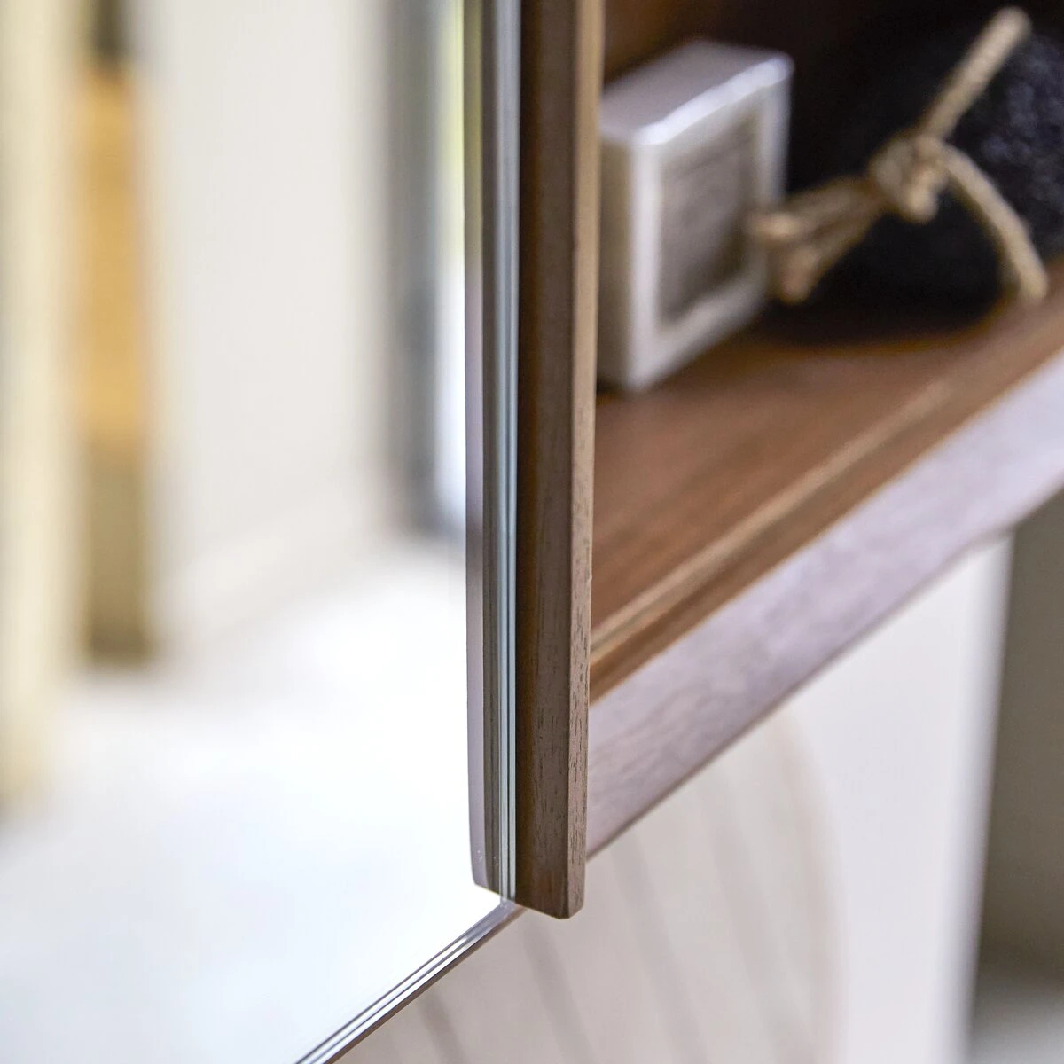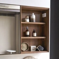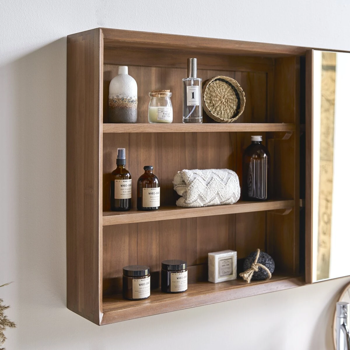 A noter aussi, les étagères latérales qui mettent à portée de main le nécessaire de toilette le plus utilisé. Un design intemporel et authentique pour une armoire de toilette en teck massif de qualité.