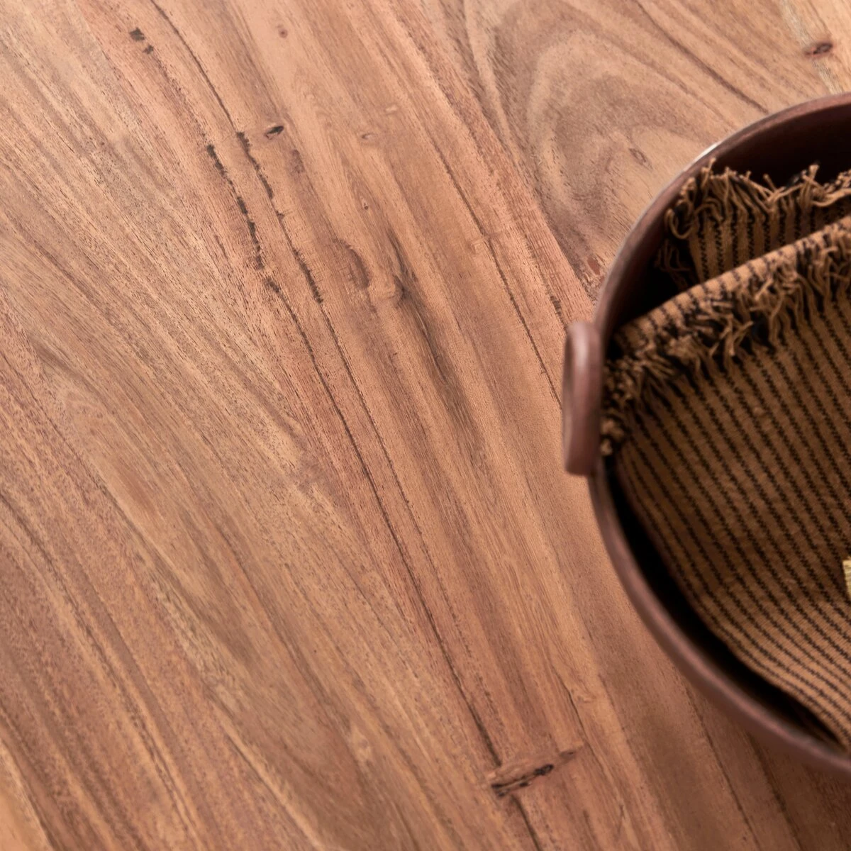 Vous aimerez le plateau en acacia massif ultra résistant et les piètements en métal qui lui confèrent un petit air industriel ! De belles proportions, elle est idéale aussi pour les petits diners en amoureux ou les plateaux télé.