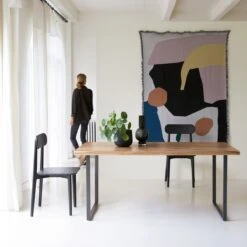 L’esprit industriel conjugue pureté des lignes et technicité des matériaux. Le plateau en acacia massif, très résistant au choc et à la chaleur, se pare de remarquables reflets dorés. Les piètements situés en bordure permettent d’accueillir un plus grand nombre de convives de chaque côté. Vous aimerez lui associer des fauteuils pour miser sur le contraste des volumes ou des chaises design dans un esprit plus minimaliste. Une salle à manger qui peut aussi s’interpréter en bureau spacieux, au gré des envies !