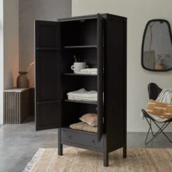 L’armoire en pin massif Thaki Black s’inspire de l’Orient pour apporter du caractère à toute la maison… et inviter au voyage sans bouger de chez soi ! On aime la générosité de son espace de rangement et le tiroir du bas, idéal pour les petites pièces comme les serviettes de table ou les couverts au séjour, les chaussettes et autres sous-vêtements dans la chambre. Vous serez sensible au parti-pris écocitoyen de cette belle armoire qui est certifiée FSC®, ce qui garantit que le pin dont elle est constituée provient de forêts durablement gérées.