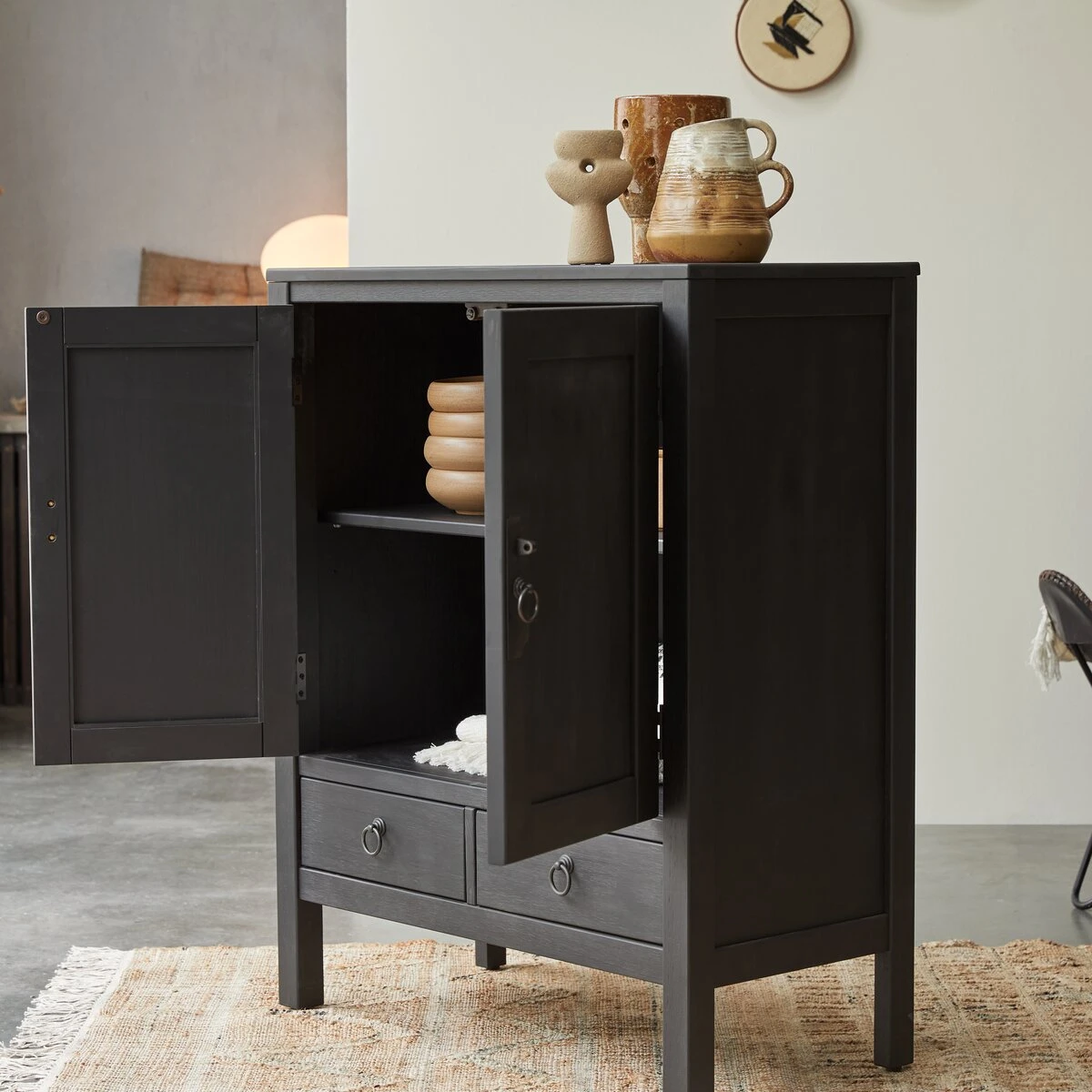 Le bahut en pin massif Thaki Black, typiquement le type de meuble qui vous permet de vous évader sans quitter la maison… D’inspiration orientale, ce joli meuble invite au voyage et à l’exotisme. On aime sa belle capacité de rangement et son faible encombrement au sol qui lui permet de trouver sa place dans toutes les pièces de la maison.
