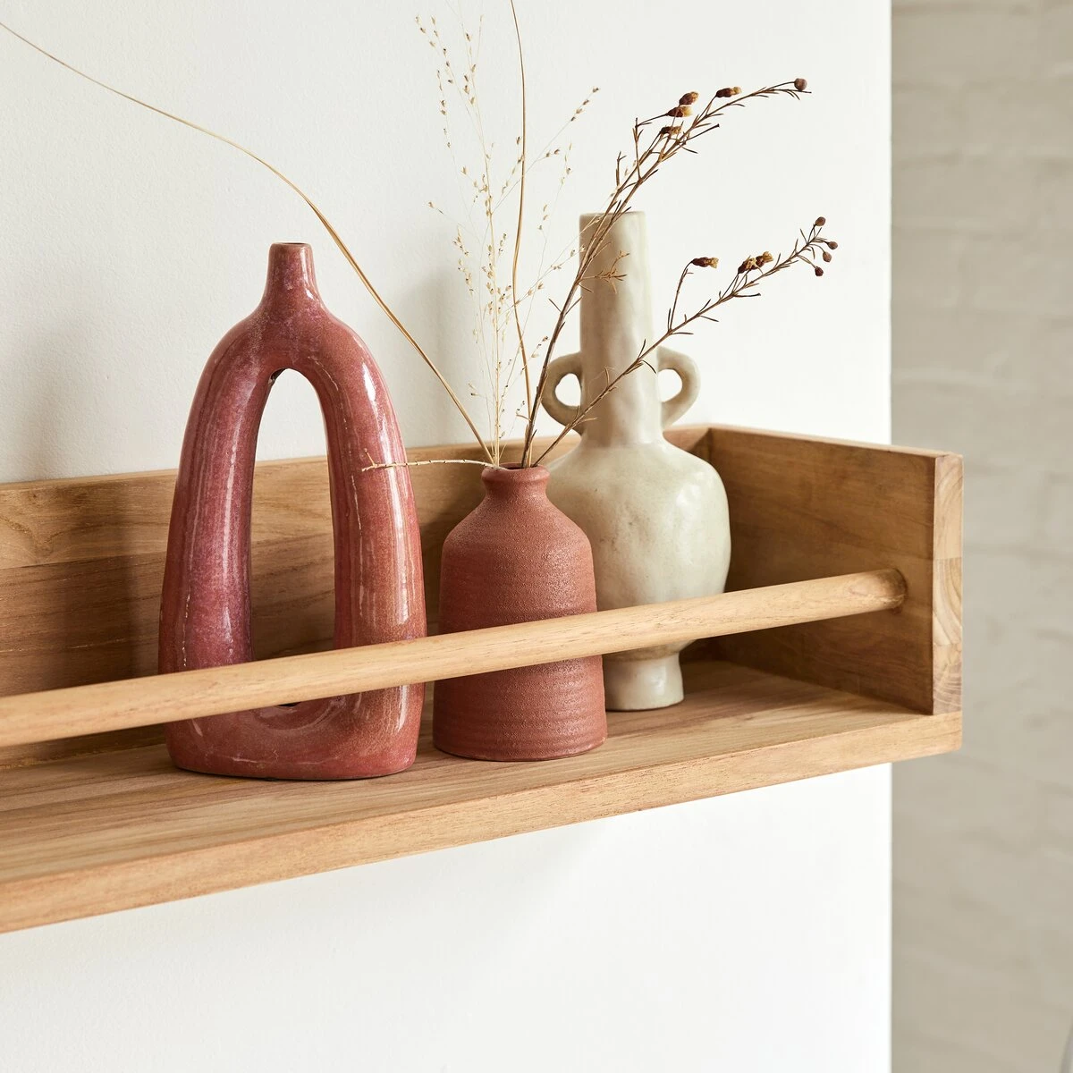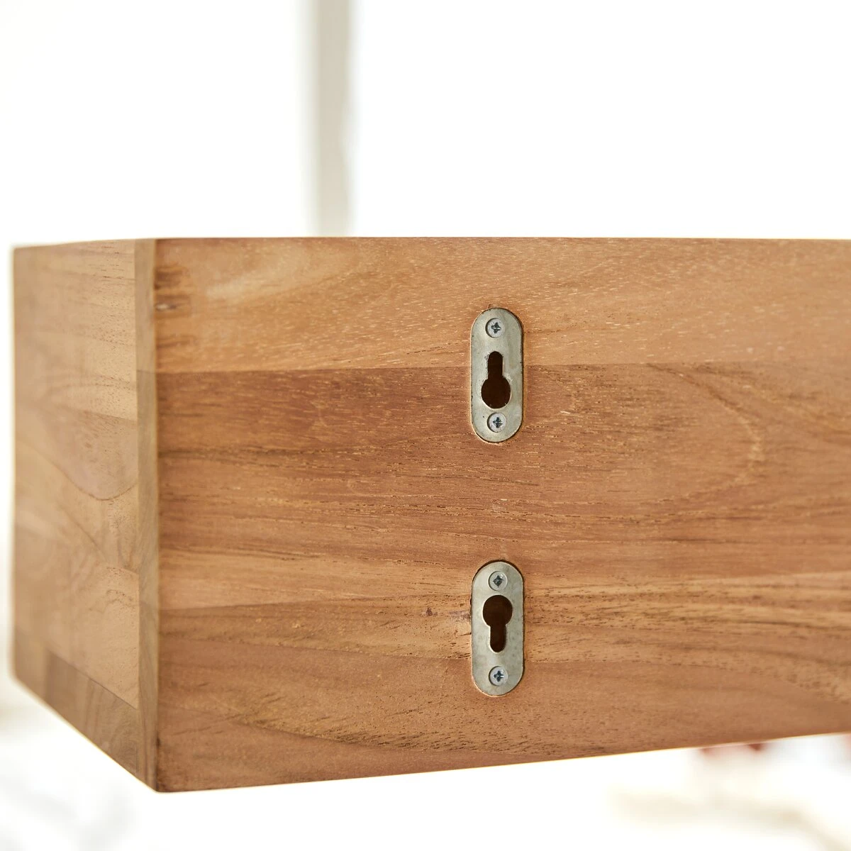 L’étagère murale en teck massif certifié FSC® Ugo 100 reçoit avec une élégance toute naturelle livres, petites plantes (comme des succulentes par exemple) et objets de déco tendance.