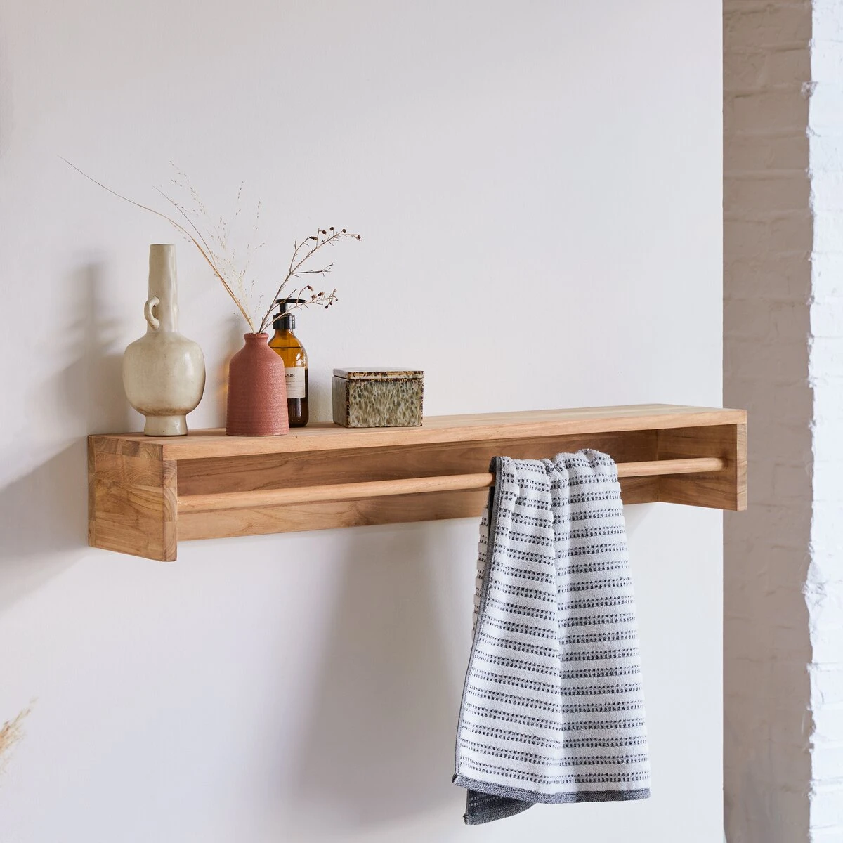 Design et astucieuse, lâĂ©tagĂšre murale de salle de bain en teck massif certifiĂ© FSCŸ Ugo 100⊠une 2 en 1 bien pratique !