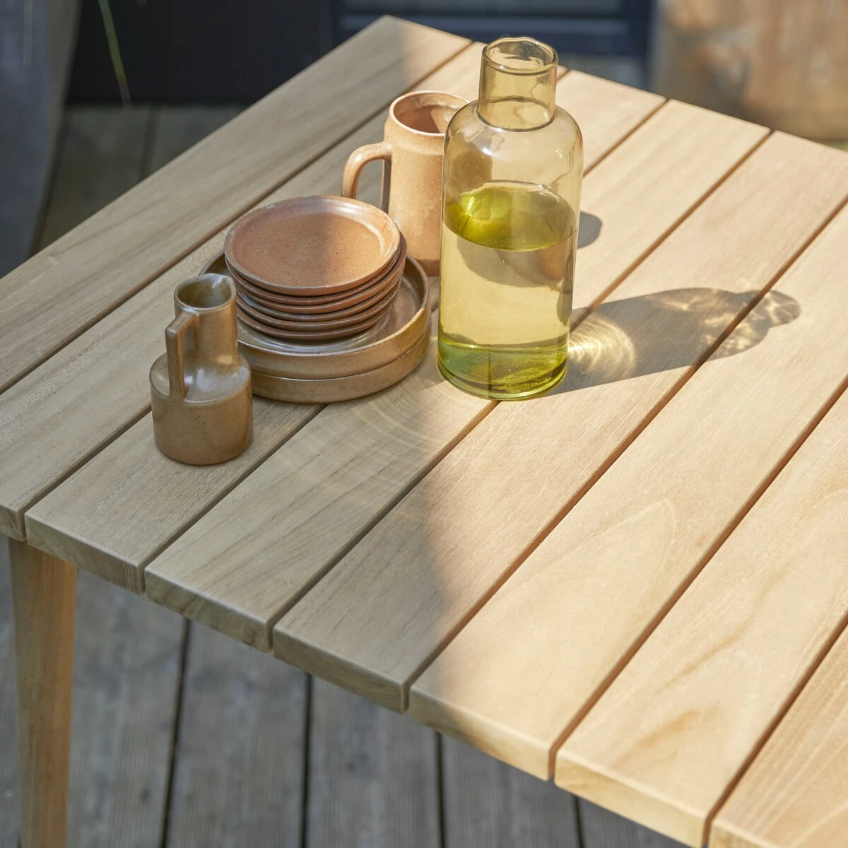Faites place à la convivialité et à l’élégance avec cette table de jardin en teck Vadim. Procurez-vous des moments de détente au jardin autour de cette élégante table en bois massif qui sera la pièce maîtresse de vos événements. Vous serez séduits par ses lignes épurées et son design sobre. Elégante en toute simplicité, notre table apportera à votre espace extérieur une touche de modernité et de chaleur.