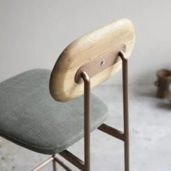 Le dossier est en chĂȘne massif, huilĂ© pour le protĂ©ger et en valoriser la beautĂ© naturelle ; lâassise en lin et le piĂ©tement en cuivre brossé⊠alliance rĂ©ussie de matiĂšres premium !
