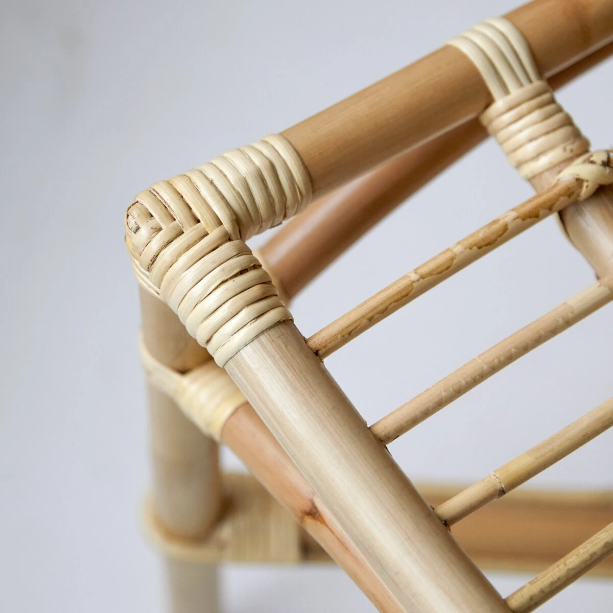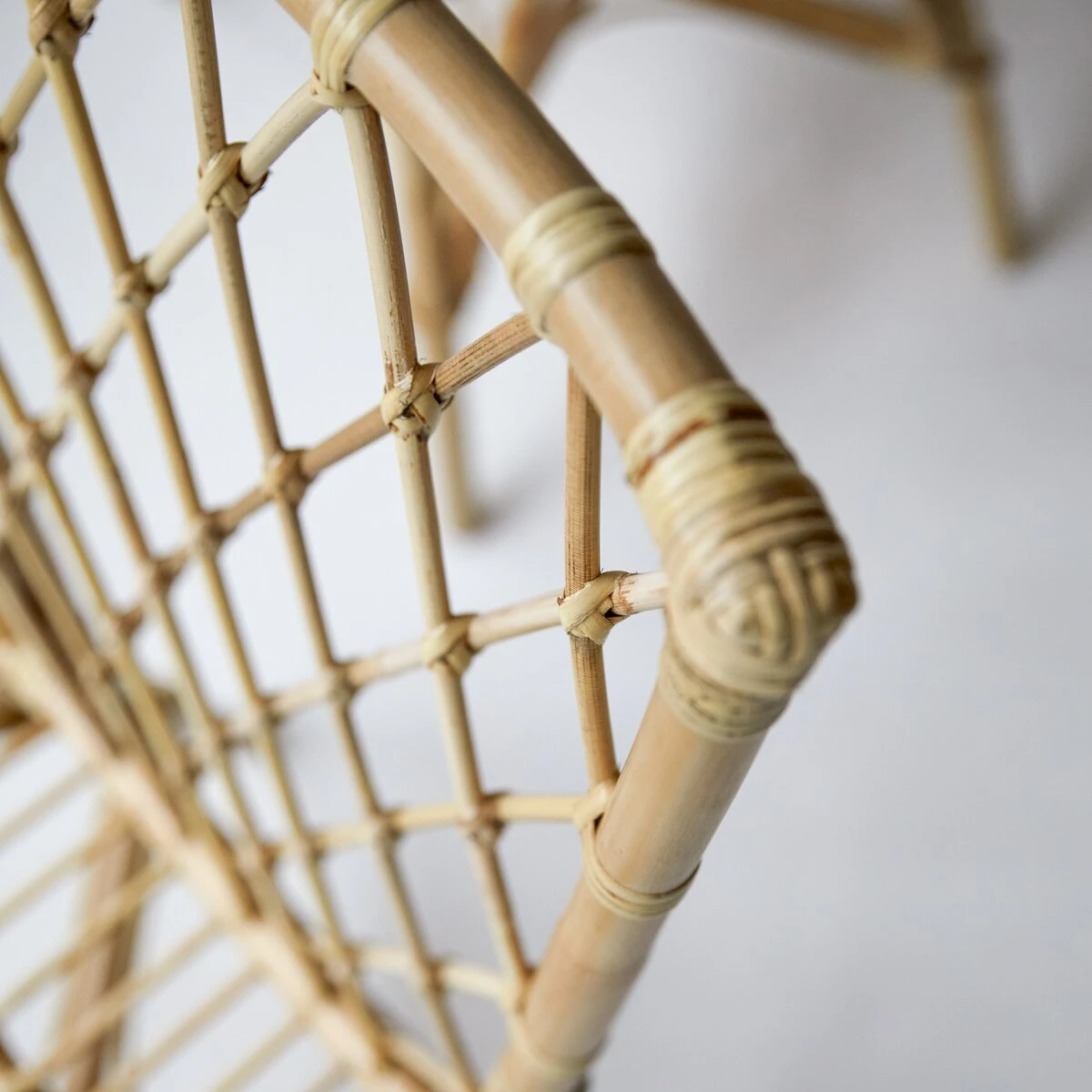 Nous aimons la simplicité de son style; original tout en restant naturel et authentique. Vous aimerez le contraste entre la douceur de sa teinte claire et la géométrie de la composition en tiges de rotin.